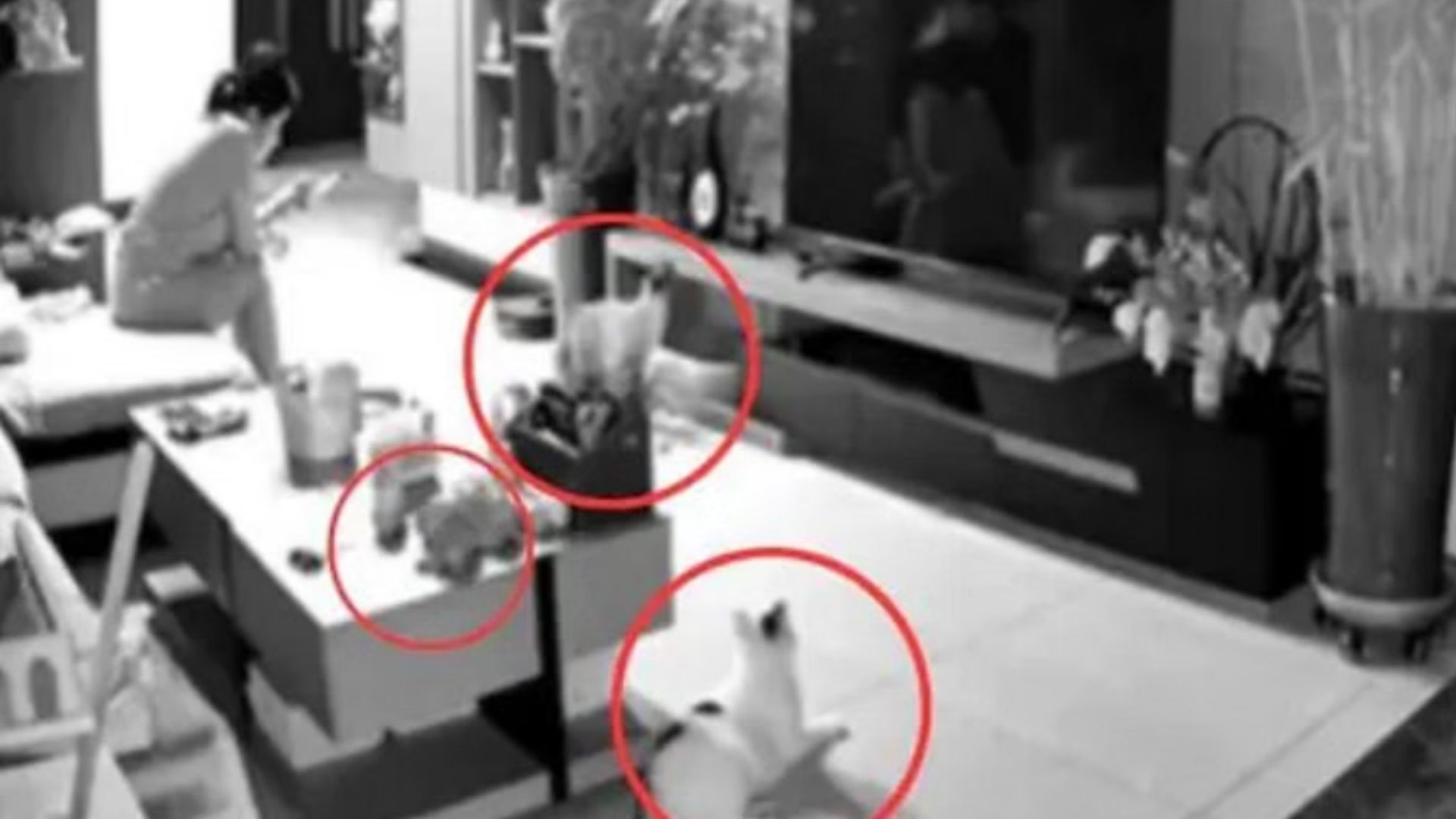 ಬೆಕ್ಕುಗಳ ಈ ನಡವಳಿಕೆಯನ್ನು ನೋಡಿ ಮಹಿಳೆಯ ಗಮನ ಮೊಬೈಲ್‌ನಿಂದ ಬೇರೆಡೆಗೆ ತಿರುಗಿ ಆಕೆ ತಕ್ಷಣ ಎಚ್ಚರಗೊಂಡು ಬೇಗನೆ ಎದ್ದು ನಿಲ್ಲುತ್ತಾಳೆ. ಇನ್ನೇನು ಆಕೆ ತಾನಿರುವ ಜಾಗದಿಂದ ಹೊರಟ ತಕ್ಷಣ ಟಿವಿಯಿದ್ದ ಜಾಗದ ಹಿಂದಿನ ಗೋಡೆಯಿಂದ ಭಾರವಾದ ಟೈಲ್ ಬೀಳುತ್ತದೆ. ಹಾಗೆ ನೋಡಿದರೆ ಆ ಟೈಲ್ ಕೆಲವು ಸೆಕೆಂಡುಗಳ ಹಿಂದೆ ಮಹಿಳೆ ಕುಳಿತಿದ್ದ ಅದೇ ಸ್ಥಳದಲ್ಲಿ ಬೀಳುತ್ತದೆ. ಮಹಿಳೆ ಇನ್ನೂ ಸ್ವಲ್ಪ ಸಮಯ ಅಲ್ಲಿ ಕುಳಿತಿದ್ದರೆ ಅವಳು ಗಂಭೀರವಾಗಿ ಗಾಯಗೊಂಡಿರುತ್ತಿದ್ದಳು ಅಥವಾ ಅವಳ ಜೀವಕ್ಕೂ ಅಪಾಯವಾಗುತ್ತಿತ್ತು.
