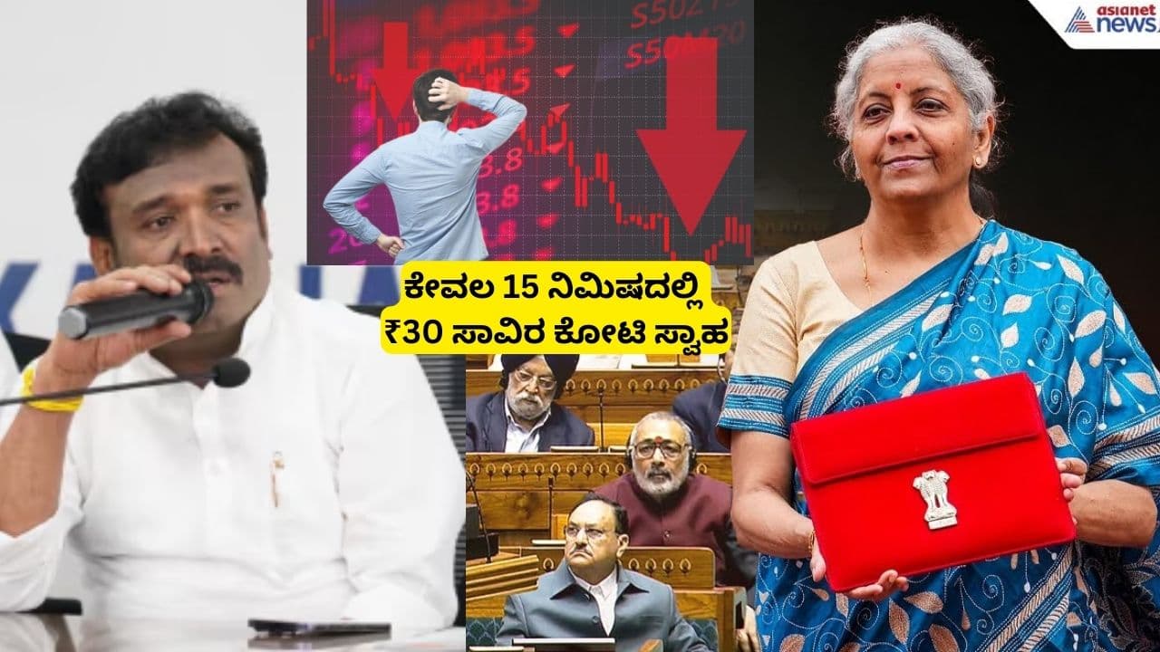 ನವದೆಹಲಿ (ಫೆ.01): ಕೇಂದ್ರ ಹಣಕಾಸು ಸಚಿವೆ ನಿರ್ಮಲಾ ಸೀತಾರಾಮನ್ ಮಂಡಿಸಿದ ಬಜೆಟ್ ಬಗ್ಗೆ ರಾಜ್ಯ ಕಾಂಗ್ರೆಸ್‌ನ ರಾಜ್ಯಸಭಾ ಸದಸ್ಯ ಜಿ.ಸಿ. ಚಂದ್ರಶೇಖರ್ ತೀವ್ರ ವಾಗ್ದಾಳಿ ನಡೆಸಿದ್ದಾರೆ. ‘ಬಜೆಟ್ ಮಂಡನೆಯಾದ ಕೇವಲ 15 ನಿಮಿಷಗಳಲ್ಲಿ ಷೇರು ಮಾರುಕಟ್ಟೆಯಲ್ಲಿ ಹೂಡಿಕೆದಾರರಿಗೆ ಬರೋಬ್ಬರಿ 30 ಸಾವಿರ ಕೋಟಿ ರೂಪಾಯಿ ನಷ್ಟವಾಗಿದೆ. ಬಜೆಟ್ ಹೇಗಿದೆ ಎಂಬುದಕ್ಕೆ ಇದೇ ಸಾಕ್ಷಿ’ ಎಂದು ವ್ಯಂಗ್ಯವಾಡಿದ್ದಾರೆ.