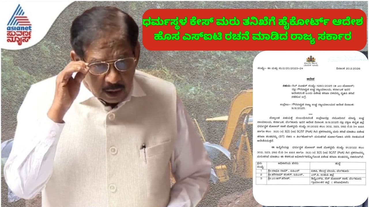 ಧರ್ಮಸ್ಥಳ ಪೊಲೀಸ್ ಠಾಣೆಯ ಮೊಕದ್ದಮೆ ಸಂಖ್ಯೆ 91/2022 ರ ತನಿಖೆಯು ‘ಅತ್ಯಂತ ಕಳಪೆ’ (Absolutely Shoddy) ಎಂದು ಹೈಕೋರ್ಟ್ ನ್ಯಾಯಮೂರ್ತಿ ಎಂ. ನಾಗಪ್ರಸನ್ನ ಅವರಿದ್ದ ಪೀಠವು ತೀವ್ರ ಅಸಮಾಧಾನ ವ್ಯಕ್ತಪಡಿಸಿತ್ತು. ಪ್ರಕರಣದ ಸಾಕ್ಷ್ಯ ನಾಶಪಡಿಸಿರುವ ಸಾಧ್ಯತೆ ಮತ್ತು ತನಿಖಾಧಿಕಾರಿಗಳು ಹಾದಿ ತಪ್ಪಿಸಿರುವ ಅಂಶಗಳನ್ನು ಪರಿಗಣಿಸಿದ ನ್ಯಾಯಾಲಯವು, ಸತ್ಯಾಸತ್ಯತೆ ಹೊರಬರಲು ಮರುತನಿಖೆಯ ಅಗತ್ಯವಿದೆ ಎಂದು ಸೂಚಿಸಿತ್ತು. ಈ ಹಿನ್ನೆಲೆಯಲ್ಲಿ ಗೃಹ ಇಲಾಖೆಯು ಫೆಬ್ರವರಿ 20, 2026 ರಂದು ಅಧಿಕೃತವಾಗಿ SIT ರಚನೆಗೆ ಆದೇಶಿಸಿದೆ.