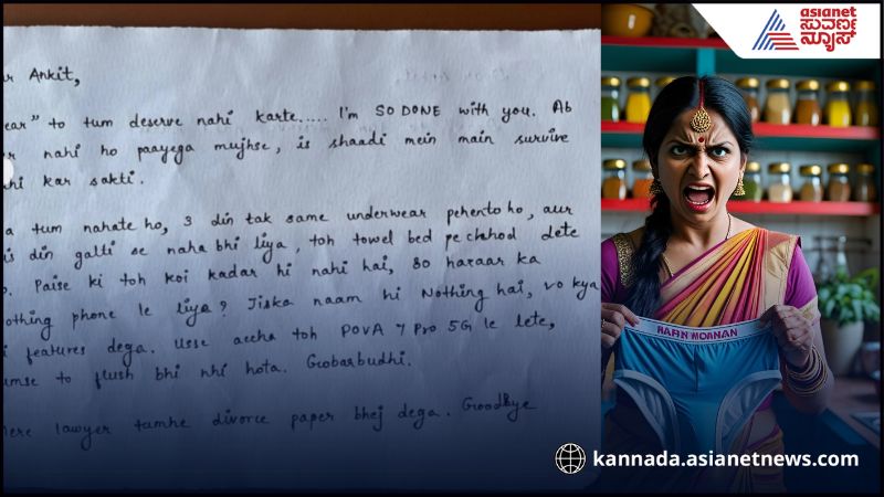 ಪತ್ನಿ ಬರೆದ ಲೆಟರ್ (letter) : ಪ್ರಿಯ ಅಂಕಿತ್, ನೀನು ಪ್ರಿಯ ಎನ್ನಲು ಅರ್ಹನಲ್ಲ. ನಾನು ನಿನ್ನಿಂದ ಬೇಸತ್ತಿದ್ದೇನೆ. ನನಗೆ ಇನ್ನು ಸಹಿಸಲು ಸಾಧ್ಯವಿಲ್ಲ. ಈ ಸಂಬಂಧದಲ್ಲಿ ನಾನು ಬದುಕಲು ಸಾಧ್ಯವಿಲ್ಲ. ನೀನು ಸ್ನಾನ ಮಾಡುವುದಿಲ್ಲ, ನೀನು ಮೂರು ದಿನಗಳವರೆಗೆ ಒಂದೇ ಅಂಡರ್ವೇರ್ ಧರಿರ್ತಿಯಾ. ಎಲ್ಲೂ ಆಕಸ್ಮಿಕವಾಗಿ ಸ್ನಾನ ಮಾಡಿದ್ರೆ ಆ ದಿನ, ಒದ್ದೆ ಟವಲ್ ಅನ್ನು ಹಾಸಿಗೆಯ ಮೇಲೆ ಹಾಕಿರ್ತೀಯಾ. ನೀನು ಹಣಕ್ಕೆ ಸ್ವಲ್ಪವೂ ಬೆಲೆ ಕೊಡೋದಿಲ್ಲ. ನೀನು 80 ಸಾವಿರ ಬೆಲೆಬಾಳುವ ನಥಿಂಗ್ ಫೋನ್ ಖರೀದಿಸಿದ್ದೀಯ. ಅದರ ಹೆಸರೇ ನಥಿಂಗ್ ಅಂದ್ಮೇಲೆ ಇನ್ನು ಅದ್ರಲ್ಲಿ ಏನಿರಲು ಸಾಧ್ಯ? ನೀನು ಫ್ಲಶ್ ಕೂಡ ಸರಿಯಾಗಿ ಮಾಡೋದಿಲ್ಲ. ಮೂರ್ಖ! ನನ್ನ ವಕೀಲರು ನಿಮಗೆ ಡಿವೋರ್ಸ್ ಲೆಟರ್ ಕಳಿಸ್ತಾರೆ. ಗುಡ್ ಬೈ. ಹೀಗಂತ ಮಹಿಳೆ ಡಿವೋರ್ಸ್ ಲೆಟರ್ ಬರೆದಿದ್ದಾಳೆ.