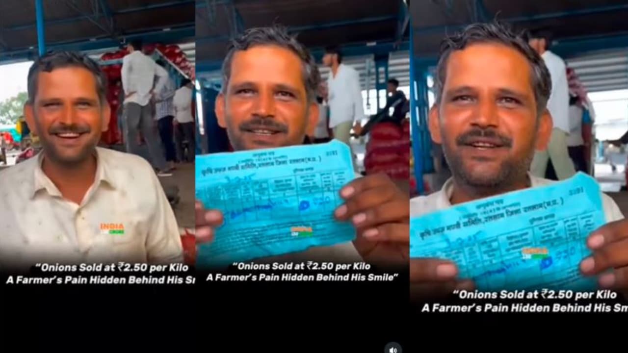 Sad Reality of Indian Farming: ಹಲವು ತಿಂಗಳ ಕಾಲ ಕಷ್ಟಪಟ್ಟು ಬೆಳೆದ ಈರುಳ್ಳಿಗೆ ರೈತನಿಗೆ ಮಾರುಕಟ್ಟೆಯಲ್ಲಿ ಕೇವಲ 2.50 ರೂಪಾಯಿ ದರ ಸಿಕ್ಕಿದ್ದೆ, ಇದರಿಂದ ದುಃಖವಾದರೂ ತನ್ನ ನೋವನ್ನು ನಗುವಿನ ಹಿಂದೆ ಮರೆಮಾಚಿ ರೈತ ರಶೀದಿ ತೋರಿಸುತ್ತಾ ನಕ್ಕಿದ್ದು ವೀಡಿಯೋ ವೈರಲ್ ಆಗಿದೆ.