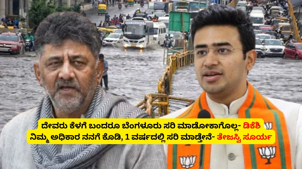 ಬೆಂಗಳೂರು (ಜು.14): ಇತ್ತೀಚೆಗೆ ಬೆಂಗಳೂರು ನಗರದಲ್ಲಿ ಮಳೆಯಿಂದಾಗಿ ರಸ್ತೆಗಳು ಮುಳುಗಡೆಯಾಗಿದ್ದು, ಮನೆಗಳಿಗೆ ನೀರು ನುಗ್ಗಿ ಅಪಾರ ಪ್ರಮಾಣದ ಹಾನಿಯಾಗಿತ್ತು. ಈ ವೇಳೆ ಮಾಧ್ಯಮಗಳೊಂದಿಗೆ ಮಾತನಾಡಿದ್ದ ಉಪಮುಖ್ಯಮಂತ್ರಿ ಡಿ.ಕೆ. ಶಿವಕುಮಾರ್ ದೇವರೇ ಬಂದರೂ ಬೆಂಳೂರನ್ನು ಸರಿ ಮಾಡುವುದಕ್ಕೆ ಆಗೊಲ್ಲ ಎಂದಿದ್ದರು. ಆದರೆ, ಇದೀಗ ಡಿಸಿಎಂ ಡಿ.ಕೆ. ಶಿವಕುಮಾರ್ ಅವರ ಅಧಿಕಾರ ನನಗೆ ಇದ್ದಿದ್ದರೆ ನಾನು 1 ವರ್ಷದಲ್ಲಿ ಬೆಂಗಳೂರು ನಗರ ಅಭಿವೃದ್ಧಿ ಮಾಡುತ್ತಿದ್ದೆನು ಎಂದು ಸಂಸದ ತೇಜಸ್ವಿ ಸೂರ್ಯ ಸವಾಲು ಹಾಕಿದ್ದಾರೆ.