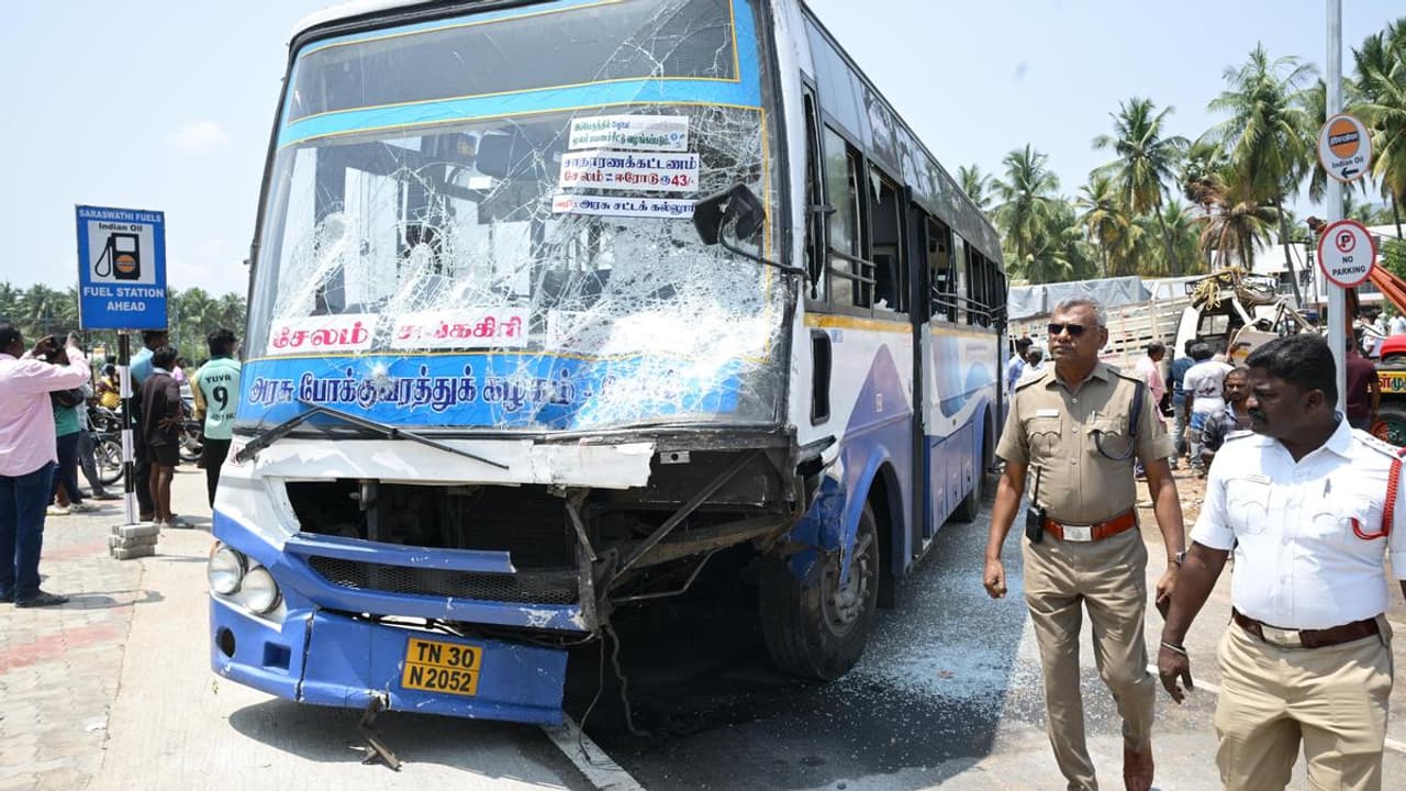 ಶುಕ್ರವಾರ ಬೆಳಿಗ್ಗೆ ಸುಮಾರು 11 ಗಂಟೆಗೆ ಉತ್ತಮಚೋಳಪುರಂ ಬಳಿ ಈ ಘಟನೆ ನಡೆದಿದೆ. ಈರೋಡ್ನಿಂದ ಸೇಲಂಗೆ ತೆರಳುತ್ತಿದ್ದ ಸರ್ಕಾರಿ ಬಸ್ನಲ್ಲಿ 30ಕ್ಕೂ ಹೆಚ್ಚು ಪ್ರಯಾಣಿಕರಿದ್ದರು. ಅಯ್ಯಂದುರೈ ಎಂಬುವವರು ಚಲಾಯಿಸುತ್ತಿದ್ದ ಈ ಬಸ್ನ ಬ್ರೇಕ್ ಹಠಾತ್ ಕೈಕೊಟ್ಟಿದ್ದರಿಂದ ಚಾಲಕನ ನಿಯಂತ್ರಣ ತಪ್ಪಿದೆ. ವೇಗವಾಗಿ ಬಂದ ಬಸ್ ಡಿವೈಡರ್ ದಾಟಿ ವಿರುದ್ಧ ದಿಕ್ಕಿನ ರಸ್ತೆಗೆ ನುಗ್ಗಿ, ಅಲ್ಲಿ ಬರುತ್ತಿದ್ದ ಒಂದು ದ್ವಿಚಕ್ರ ವಾಹನ ಮತ್ತು ಪಿಕಪ್ ವ್ಯಾನ್ಗೆ ಬಲವಾಗಿ ಡಿಕ್ಕಿ ಹೊಡೆದಿದೆ.