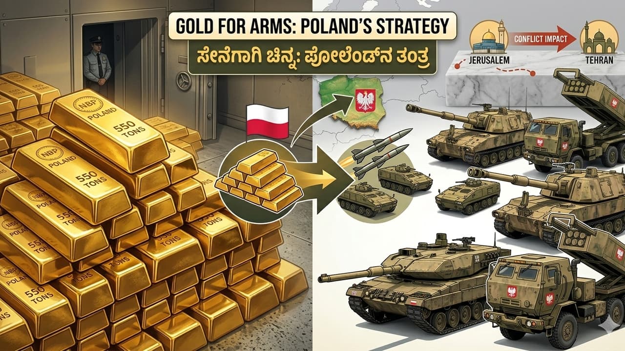 ಯುದ್ಧದ ಭೀತಿಯಿಂದಾಗಿ, ವಿಶ್ವದ ಪ್ರಮುಖ ಚಿನ್ನದ ದಾಸ್ತಾನುದಾರ ದೇಶವಾದ ಪೋಲೆಂಡ್ ತನ್ನ ರಕ್ಷಣಾ ಪಡೆಯನ್ನು ಬಲಪಡಿಸಲು ಮುಂದಾಗಿದೆ. ಇದಕ್ಕಾಗಿ, ಗಗನಕ್ಕೇರಿರುವ ಚಿನ್ನದ ಬೆಲೆಯ ಲಾಭ ಪಡೆದು, ಸುಮಾರು ₹1.1 ಲಕ್ಷ ಕೋಟಿ ಮೌಲ್ಯದ ಬಂಗಾರವನ್ನು ಮಾರಿ ಯುದ್ಧೋಪಕರಣಗಳನ್ನು ಖರೀದಿಸಲು ನಿರ್ಧರಿಸಿದೆ.