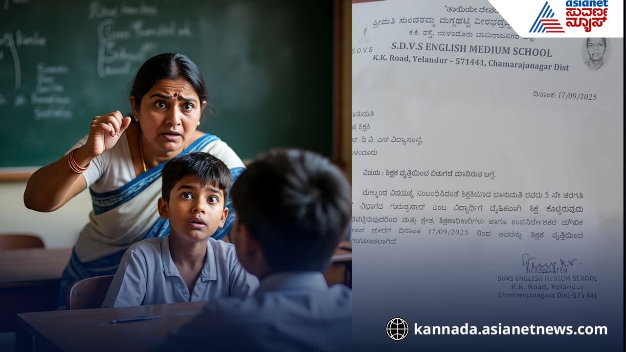 ಚಾಮರಾಜನಗರದ ಯಳಂದೂರಿನ ಎಸ್ಡಿವಿಎಸ್ ಶಾಲೆಯಲ್ಲಿ, ಮೂತ್ರ ವಿಸರ್ಜನೆಗೆ ಅನುಮತಿ ಕೇಳಿದ ವಿದ್ಯಾರ್ಥಿಗೆ ಶಿಕ್ಷಕಿ ಭಾನುಮತಿ ಮನಸೋಇಚ್ಛೆ ಥಳಿಸಿದ್ದಾರೆ. ಈ ಘಟನೆಯಿಂದ ವಿದ್ಯಾರ್ಥಿಯ ಮೈಮೇಲೆ ಬಾಸುಂಡೆಗಳಾಗಿದ್ದು, ಪಾಲಕರ ಆಕ್ರೋಶದ ಹಿನ್ನೆಲೆಯಲ್ಲಿ ಶಾಲಾಡಳಿತ ಮಂಡಳಿ ಶಿಕ್ಷಕಿಯನ್ನು ಸೇವೆಯಿಂದ ವಜಾಗೊಳಿಸಿದೆ.