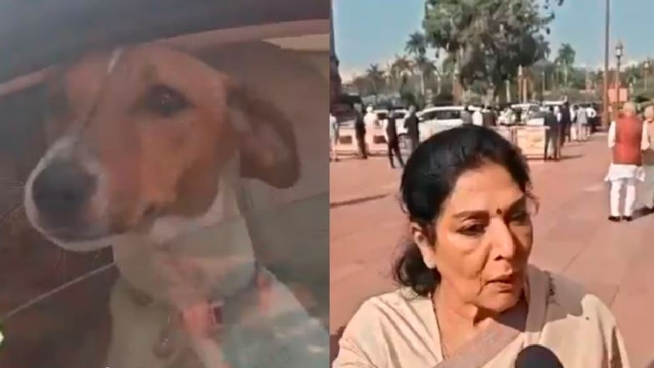 ಸಂಸತ್‌ಗೆ ಬೀದಿನಾಯಿಯನ್ನು ಕರೆದುಕೊಂಡು ಬಂದು ನಿಜವಾದ ನಾಯಿಗಳು ಸಂಸತ್ತಿನಲ್ಲಿವೆ ಎಂದ ಕಾಂಗ್ರೆಸ್ ಸಂಸದೆ | Winter Session Of Parliament Congress Mp Renukha Chaudhary Brings Stray Dog