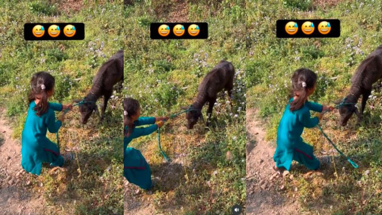 ಹಠ ಮಾಡುವ ಎಮ್ಮೆ ಕರುವಿಗೆ ಬಾಲಕಿಯ ಸವಾಲು