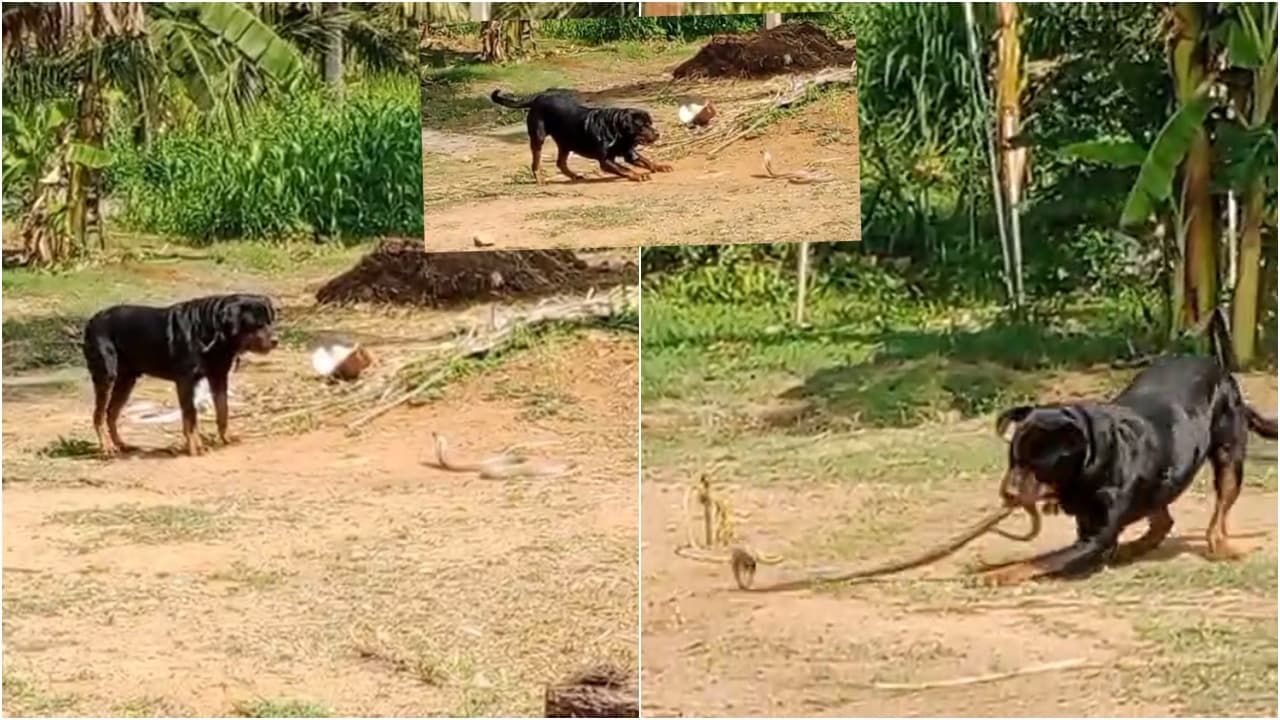 ಗ್ರಾಮದ ನಿವಾಸಿಯೊಬ್ಬರ ಮನೆಯ ಆವರಣದಲ್ಲಿ ಈ ಘಟನೆ ನಡೆದಿದೆ. ಏಕಾಏಕಿ ಎದುರಾದ ನಾಗರಹಾವನ್ನು ಕಂಡ ರಾಟ್‌ವೀಲರ್ ನಾಯಿ, ತನ್ನ ಸ್ವಭಾವದಂತೆ ಹಾವಿನ ಮೇಲೆ ದಾಳಿ ನಡೆಸಿದೆ. ಇದರಿಂದ ಹಾವು ಕೂಡ ಪ್ರತಿದಾಳಿ ನಡೆಸಿ ನಾಯಿಯನ್ನು ಹಲವು ಬಾರಿ ಕಚ್ಚಿದೆ. ಎರಡೂ ಪ್ರಾಣಿಗಳ ಮಧ್ಯೆ ನಡೆದ ಈ ಭೀಕರ ಕಾಳಗವು ಸುಮಾರು ಒಂದು ಗಂಟೆಗಳ ಕಾಲ ಮುಂದುವರಿದಿದೆ.