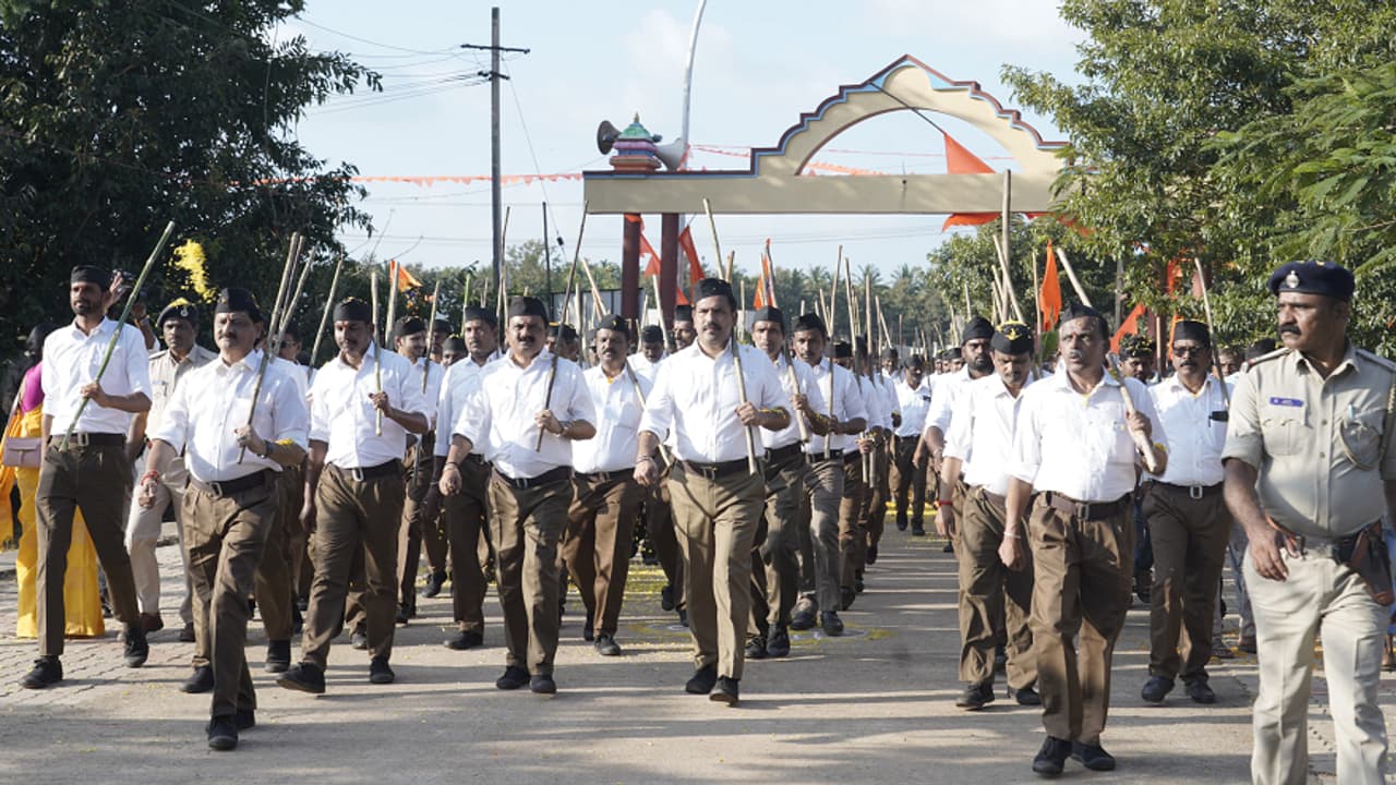 ಸಂಘದ ಶತಮಾನೋತ್ಸವ ಹಿನ್ನೆಲೆಯಲ್ಲಿ ಶನಿವಾರ ಶಿವಮೊಗ್ಗ ಜಿಲ್ಲೆ ಶಿರಾಳಕೊಪ್ಪ, ರಾಯಚೂರು ಹಾಗೂ ಕೊಪ್ಪಳ ಜಿಲ್ಲೆ ಗಂಗಾವತಿಗಳಲ್ಲಿ ಆರ್ಎಸ್ಎಸ್ ಗಣವೇಷಧಾರಿಗಳು ಆಕರ್ಷಕ ಪಥ ಸಂಚಲನ ನಡೆಸಿದರು.