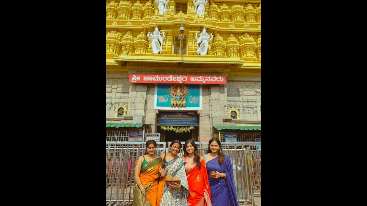 ನಟಿ ಚೈತ್ರಾ ಆಚಾರ್, ಸಂಜನಾ ಆನಂದ್ ಮತ್ತು ಸ್ನೇಹಿತರ ಬಳಗ ತಮ್ಮ ಬ್ಯುಸಿ ಶೆಡ್ಯೂಲ್ ನಿಂದ ಬ್ರೇಕ್ ತೆಗೆದುಕೊಂಡು ಜೊತೆಯಾಗಿ ಚಾಮುಂಡಿ ಬೆಟ್ಟಕ್ಕೆ ತೆರಳಿ, ದೇವಿ ದರ್ಶನ ಪಡೆದು ಬಂದಿದ್ದಾರೆ. ಜೊತೆಗೆ ಫೋಟೊಗಳನ್ನು ಪೋಸ್ಟ್ ಮಾಡಿದ್ದಾರೆ.