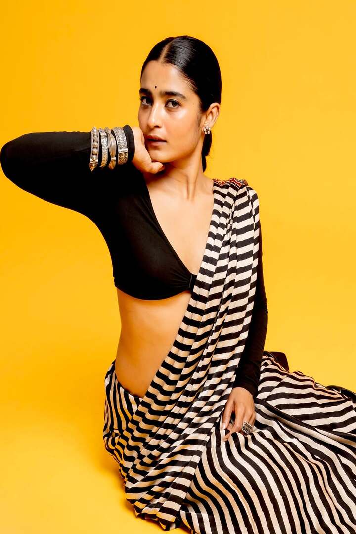 ನಟಿ ಚೈತ್ರಾ ಆಚಾರ್ ಕಪ್ಪು ಬಿಳುಪಿನ ಸೀರೆಯಲ್ಲಿ ಗ್ಲಾಮರಸ್ ಜೊತೆಗೆ ಸುಂದರವಾಗಿ ಕಾಣಿಸುತ್ತಿದ್ದಾರೆ.