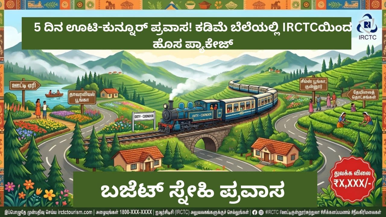 ಕಡಿಮೆ ಖರ್ಚಿನಲ್ಲಿ 5 ದಿನದ ಊಟಿ-ಕುನ್ನೂರ್ ಪ್ರವಾಸ: IRCTCಯಿಂದ ಬಜೆಟ್ ಫ್ರೆಂಡ್ಲಿ ಪ್ಯಾಕೇಜ್ | Irctc New Ooty Coonoor Tour Package From Chennai Price Timing Places Details Mrq