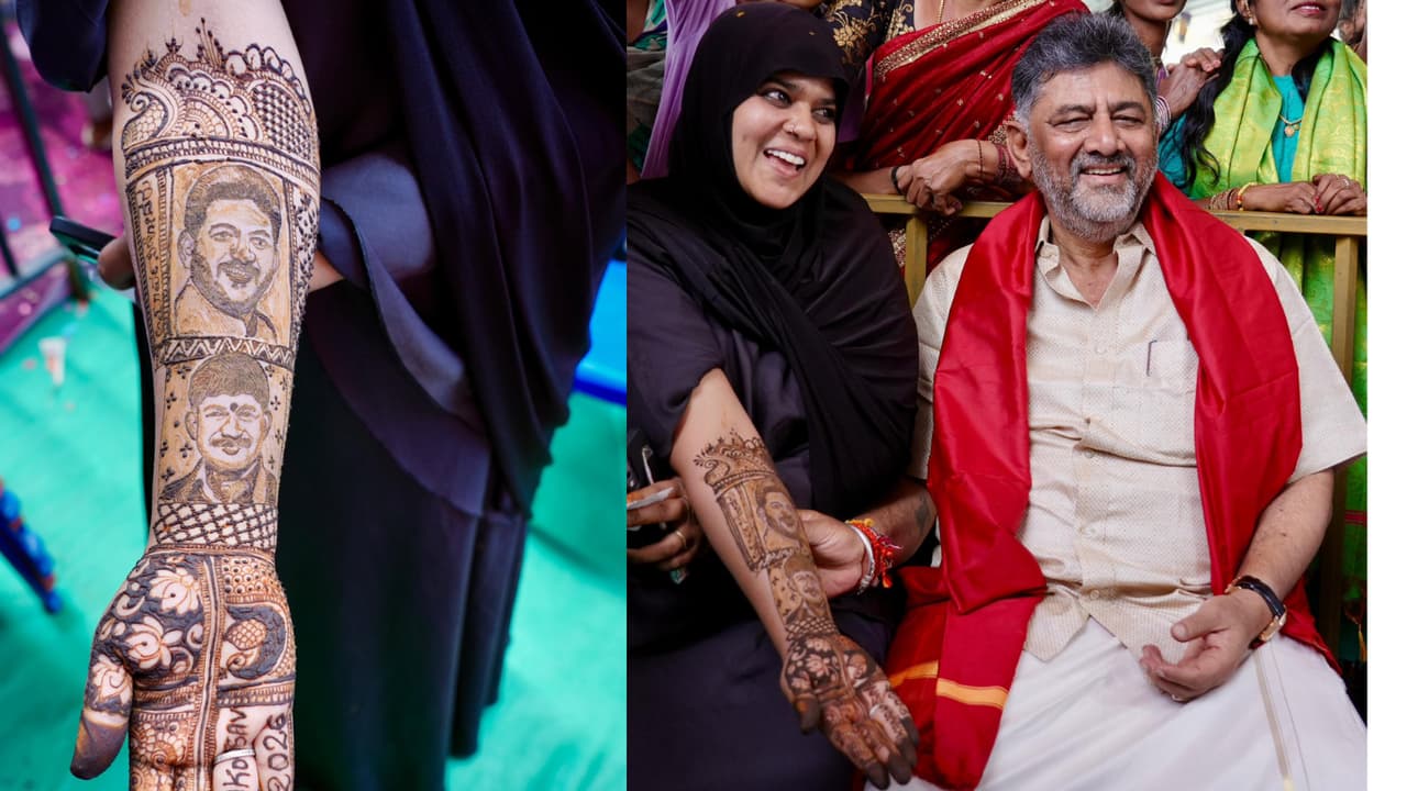 ಡಿಸಿಎಂ ಡಿಕೆಶಿ ಫೋಟೋವನ್ನು ಮೆಹಂದಿ ಹಾಕಿಸಿಕೊಂಡ ಮುಸ್ಲಿಂ ಮಹಿಳೆ, ಕನಕೋತ್ಸವ ಸಂಭ್ರಮ