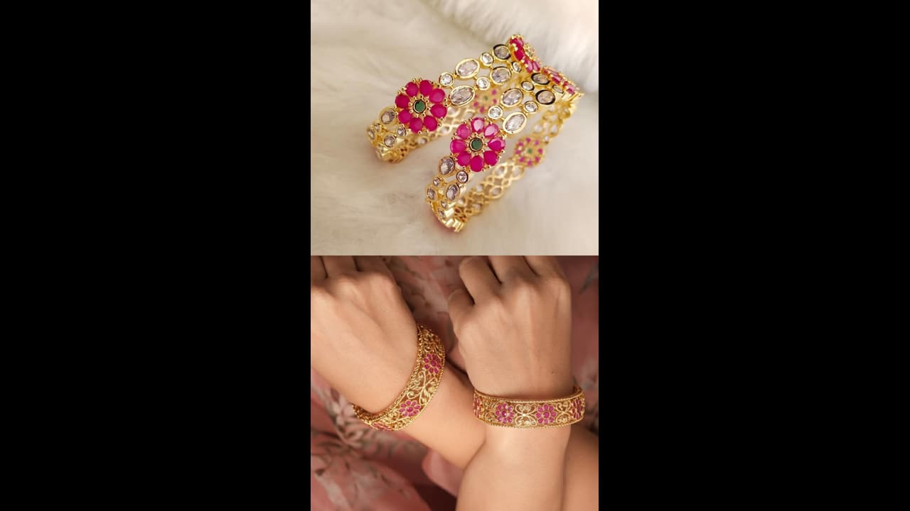 Pink Stone Bangle Designs: 2025 ರಲ್ಲಿ, ಪಿಂಕ್ ಸ್ಟೋನ್ ಆಭರಣಗಳ ಟ್ರೆಂಡ್ ಎಲ್ಲರ ಗಮನ ಸೆಳೆಯುತ್ತಿದೆ. ಗೋಲ್ಡ್ ಪ್ಲೇಟೆಡ್, ಫ್ಲೋರಲ್ ಮತ್ತು ಸೌತ್ ಇಂಡಿಯನ್ ಸ್ಟೋನ್ ಬಳೆಗಳೊಂದಿಗೆ ಎಡಿ ವರ್ಕ್ ಕಡಗಗಳು ರಾಯಲ್ ಟಚ್ ನೀಡುತ್ತವೆ. ಇಲ್ಲಿ ನೋಡಿ, ಅದ್ಭುತ ವಿನ್ಯಾಸಗಳು.