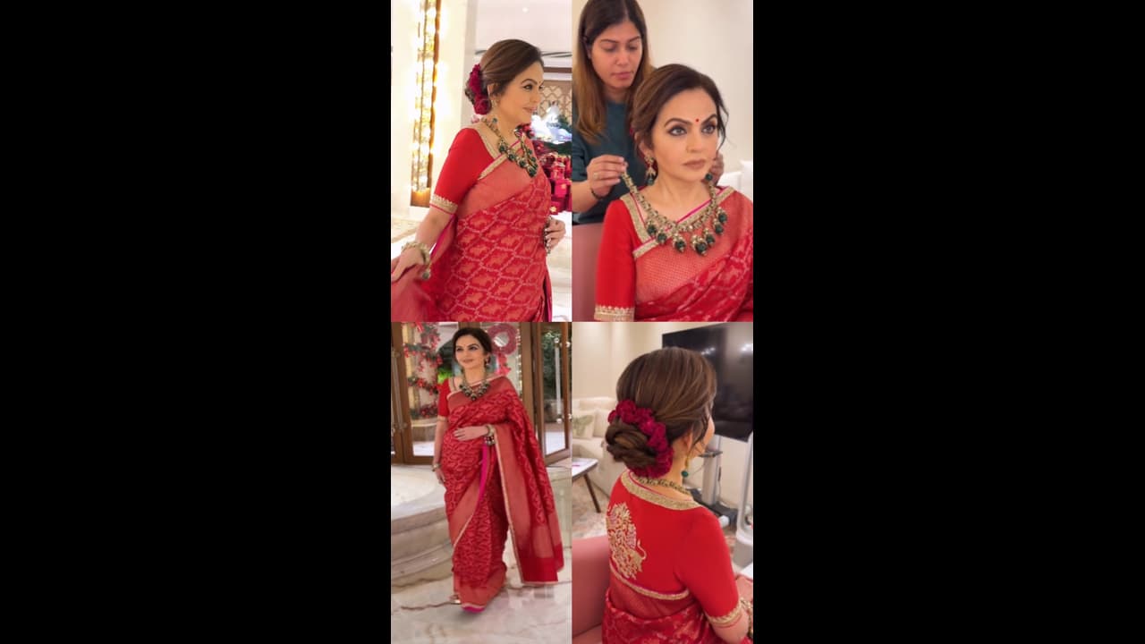 ಸ್ಟೈಲ್ ವಿಚಾರಕ್ಕೆ ಬಂದರೆ ನೀತಾ ಅಂಬಾನಿ ಸದಾ ಬೆರಗು ಮೂಡಿಸುತ್ತಾರೆ. ಇದೀಗ ಮತ್ತೊಮ್ಮೆ ಅವರ ಸಾಂಪ್ರದಾಯಿಕ ಉಡುಗೆ ಹಾಗೂ ಪಚ್ಚೆ ಹಾರದ ಜ್ಯುವೆಲರಿ ಎಲ್ಲರ ಗಮನ ಸೆಳೆದಿದೆ. ಈ ಸೀರೆಯ ಕುರಿತ ಪೂರ್ತಿ ಡೀಟೇಲ್ಸ್ ಇಲ್ಲಿದೆ.
