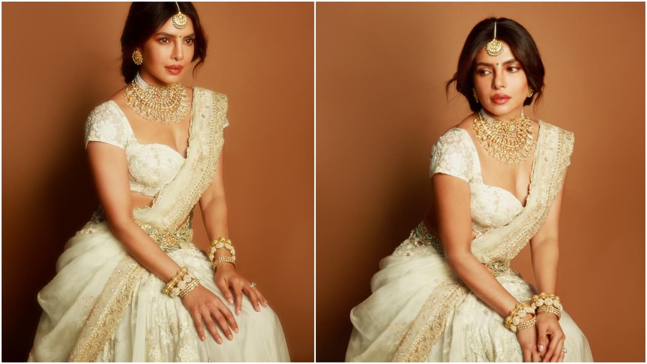 ಗೋಲ್ಡನ್ ಬಾರ್ಡರ್ ಇರುವ ಬಿಳಿಬಣ್ಣದ ಲೆಹಂಗಾದಲ್ಲಿ ನಟಿ ಪ್ರಿಯಾಂಕಾ ಚೋಪ್ರಾ ಅವರು ಮಿರಮಿರ ಎಂಬಂತೆ ಮಿಂಚಿದ್ದಾರೆ. ಬಹಳಷ್ಟು ಕಾಲದಿಂದ ಭಾರತೀಯ ಚಿತ್ರರಂಗದಿಂದ ದೂರವಾಗಿದ್ದ ನಟಿ ಪ್ರಿಯಾಂಕಾ ಚೋಪ್ರಾ ಅವರೀಗ ಮತ್ತೆ ಸಿನಿಮಾ ಮೂಲಕ ತಮ್ಮ ಅಭಿಮಾನಿಗಳ ಮುಂದೆ ಬರುತ್ತಿದ್ದಾರೆ.