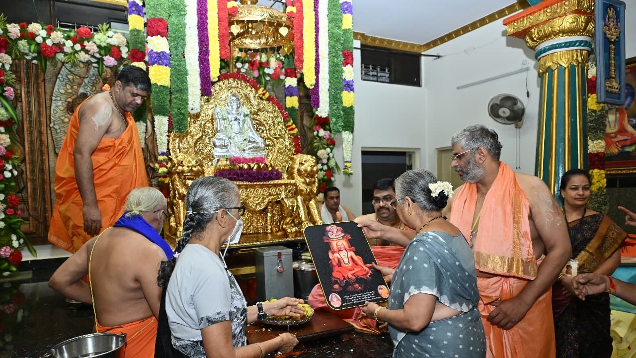 <p>ಶ್ರೀ ರಾಘವೇಂದ್ರ ಸ್ವಾಮಿಗಳ 354ನೇ ಆರಾಧನಾ ಮಹೋತ್ಸವದ ಅಂಗವಾಗಿ ಶ್ರೀಮತಿ ಸುಧಾ ಮೂರ್ತಿಯವರು ರಾಯರ ಬೃಂದಾವನಕ್ಕೆ ಆಗಮಿಸಿ ದರ್ಶನ ಪಡೆದರು.</p><img><p> ಶ್ರೀ ರಾಘವೇಂದ್ರ ಸ್ವಾಮಿಗಳ 354ನೇ ಆರಾಧನಾ ಮಹೋತ್ಸವದ ಅಂಗವಾಗಿ ಇಂದು ರಾಯರ ಬೃಂದಾವನದಲ್ಲಿ ಭಕ್ತಿಯಿಂದ ಪೂಜಾ ಕಾರ್ಯಗಳು ಜರಗಿದವು. ಈ ಸಂದರ್ಭದಲ್ಲಿ ಖ್ಯಾತ ಸಮಾಜಸೇವಕಿ ಹಾಗೂ ಲೇಖಕಿ ಶ್ರೀಮತಿ ಸುಧಾ ಮೂರ್ತಿಯವರು ಗುರುರಾಯರ ಸನ್ನಿಧಿಗೆ ಆಗಮಿಸಿ ದರ್ಶನ ಪಡೆದರು.</p><img><p>ಆರಾಧನಾ ಮಹೋತ್ಸವದ ಅಂಗವಾಗಿ ಇಂದು ಬೆಳಿಗ್ಗೆ ರಾಯರ ಬೃಂದಾವನದಲ್ಲಿ ಪಂಚಾಮೃತ ಅಭಿಷೇಕ ಹಾಗೂ ಐದು ತರದ ಹಣ್ಣುಗಳಿಂದ ಅಭಿಷೇಕ ನೆರವೇರಿಸಲಾಯಿತು. ಅನಂತರ ಭಕ್ತರು ಸನ್ನಿಧಿಯಲ್ಲಿ ಸಂಕಲ್ಪ ಮಾಡಿಕೊಂಡು ಗುರುಪಾದಪೂಜೆ ಸಲ್ಲಿಸಿ, ಫಲ ಮಂತ್ರಾಕ್ಷತೆ ಸ್ವೀಕರಿಸಿ ಗುರುರಾಯರ ಅನುಗ್ರಹವನ್ನು ಪಡೆದರು.</p><img><p>ಶ್ರೀಮತಿ ಸುಧಾ ಮೂರ್ತಿಯವರು ಪ್ರಹ್ಲಾದ ರಾಜರ ಮುಂಭಾಗದಲ್ಲಿ ಸಂಕಲ್ಪ ಮಾಡಿಕೊಂಡು ಪಾದಪೂಜೆಯಲ್ಲಿ ಭಾಗವಹಿಸಿದರು. ಈ ಸಂದರ್ಭದಲ್ಲಿ ಅವರು, “ಲೋಕಕ್ಕೆ ಒಳ್ಳೆಯದಾಗಬೇಕು” ಎಂಬ ಪ್ರಾರ್ಥನೆಯೊಂದಿಗೆ ಸಂಕಲ್ಪವನ್ನು ನೆರವೇರಿಸಿದರು.</p><img><p>ಈ ಸಂದರ್ಭದಲ್ಲಿ ಹಿರಿಯ ವ್ಯವಸ್ಥಾಪಕರಾದ ಆರ್.ಕೆ. ವಾದಿಂದ್ರಾಚಾರ್ಯರು, ಜಿಕೆ ಆಚಾರ್ಯರು ಹಾಗೂ ಶ್ರೀ ನಂದಕಿಶೋರ್ ಆಚಾರ್ಯರು ಉಪಸ್ಥಿತರಿದ್ದರು. ಹಿರಿಯ ವ್ಯವಸ್ಥಾಪಕರು ಸುಧಾ ಮೂರ್ತಿಯವರಿಗೆ ಫಲ ಮಂತ್ರಾಕ್ಷತೆ ನೀಡಿ, “ರಾಘವೇಂದ್ರ ಸ್ವಾಮಿಗಳ ಅನುಗ್ರಹ ಸದಾ ಕಾಲ ಇರಲಿ” ಎಂದು ಆಶೀರ್ವದಿಸಿದರು.</p>